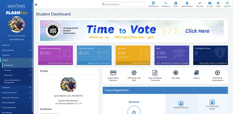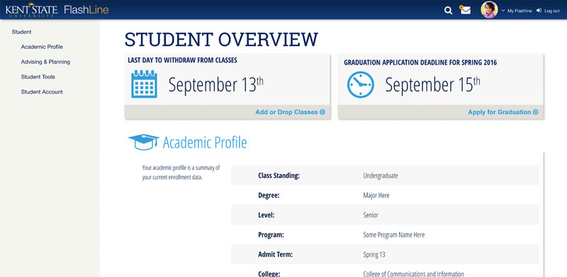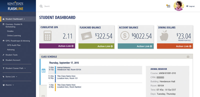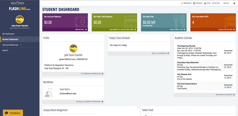 The FlashLine portal serves as the primary gateway to important resource links, authenticated applications, and utilities for Kent State’s students, faculty, staff, and alumni. People rely on the portal to access to task-based items such as homework, grades, course registration, payments, and time-sensitive workflows.